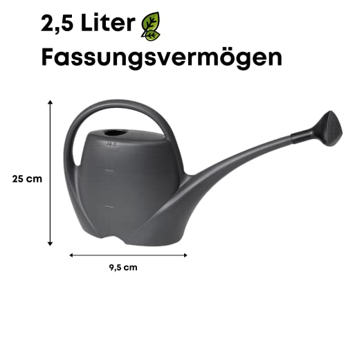 Gieter klein met sproeier voor kamerplanten, 2,5 l, bloemengieter van hoogwaardig kunststof, gieter voor binnen en buiten, ideaal voor kamerplanten, antraciet