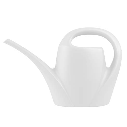 Praktische kunststof gieter in wit met gebogen handgreep voor uitgebalanceerd dragen en gieten – met lange tuit voor nauwkeurig doseren en aanzetten op de pan