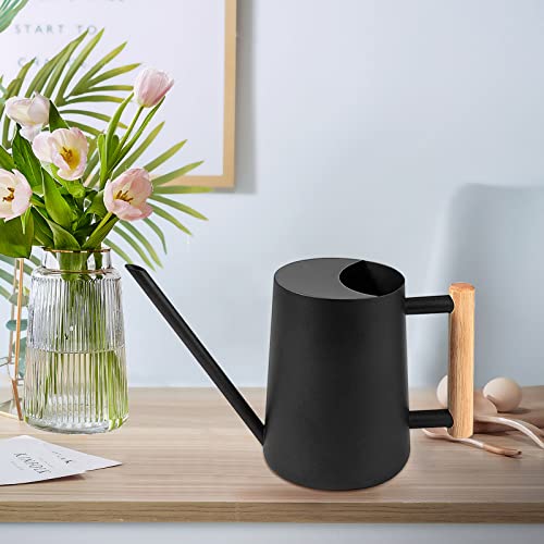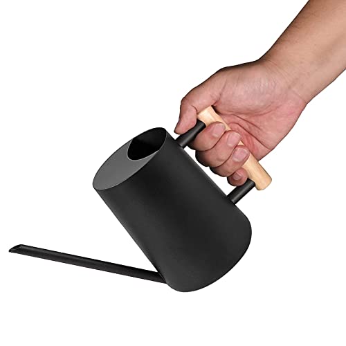 Metalen gieter voor binnen (1 l/34 oz) lange tuit gieter, gieter voor buiten- en kamerplanten met lange uitloop roestvrij staal voor kamerplant kantoor potplanten water geven (zwart)