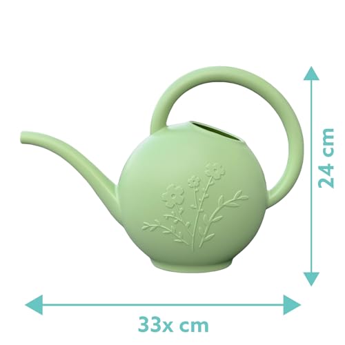 MIJOMA Betoverende kleine gieter met bloemenpatroon voor binnen en buiten, handig, 1,5 l volume, L 33 x B 13 x H 24 cm (limoengroen)