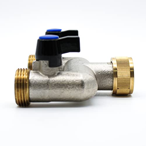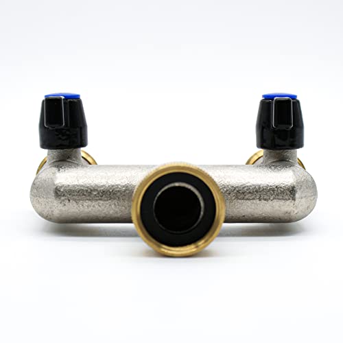 ◼️ DUBBELE MESSING TERRASKRAAN | Ideaal voor buitengebruik | Maat: 3/4 x 3/4 x 3/4 | Andere namen en toepassingen: tuinwaterverdeler, dubbele uitlaat tuinkraan, kraanverdeler, twee uitlaatkraanadapter, dubbele wasmachine en slangkraan, dubbele buitenkraan, dubbele tuinkraan