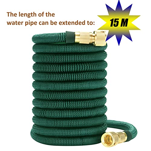 15 m Uitbreidbare Tuinslangen Set, RoseFlower Anti-knik Uitrekbare Flexibele Tuin Waterslang met Slangpijp Spuitpistool, 1/2” en 3/4” Messing Connectoren – Irrigatie schoonmaken Garden Hose Pipe