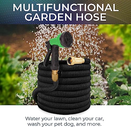 Flexibele tuinslang, 15 m, dubbellaags latex, 3/4 inch, massieve messing aansluitingen, 3450D-weefsel, knikvrij, 8 functies, flexibele waterslang (zwart)