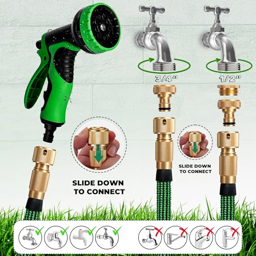 Hoogwaardige, RoHS-gecertificeerde materialen: 3450D polyester, roestvrij messing eindkappen, drielaagse latexslang. Twee adapters zijn inbegrepen, zodat hij op alle soorten kranen buitenshuis kan worden aangesloten: 1/2 inch en 3/4 inch.