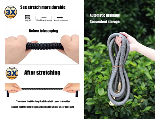 De nieuwste hoge kwaliteit – De verbeterde tweede generatie tuinslang is beter dan de eerste generatie. Hoogwaardig 3300D polyester, dubbele latexslang, stevige metalen connector en metalen zinklegering mondstuk tuinslang is zeer flexibel, sterk en duurzaam. Door het gebruik van hoogwaardige materialen en duurzaamheid zal de uitbreidbare tuinslang niet scheuren, scheuren, splitsen of verpletteren. Deze stevige tuinslang heeft een langere levensduur.
