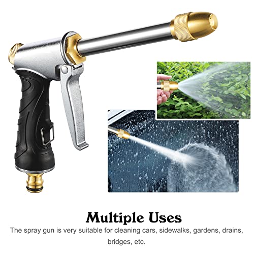 【Multifunctioneel tuinslangpistool】Hogedruk waterslangspuitpistool, in meerdere spuitmodi, is geweldig voor het wassen van je auto, het water geven van planten, het schoonmaken van de loopbrug. Met het ontwerp met lange steel is het waterspuitpistool van zinklegering ook een geweldige hulp om vloer/balkon/glas schoon te maken en overal waar je niet in de buurt kunt komen, kan het zelfs worden gebruikt voor de douche van je huisdieren en honden, voldoen aan je verschillende behoeften voor water geven en schoonmaken, geniet gewoon van je plezier met wassen, schoonmaken en water geven.