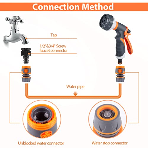Bespaar water en arbeidsbesparing: de waterstroomregelknop van het slangspuitpistool kan de waterdruk aanpassen en veel water besparen. De bovenkant van de handgreep van het waterspuitpistool is uitgerust met een vaste sleutel, die continu water zonder druk kan spuiten. Zelfs als je lang buiten water geeft, zullen je handen niet moe worden.