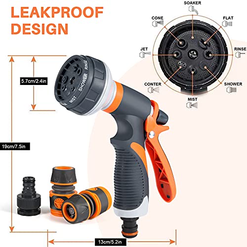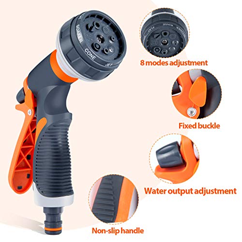 moinkerin Slangspuitpistool tuinslangmondstuk 8 patronen voor het besproeien van planten of gazons, het schoonmaken van huisdieren, het reinigen van ramen (toepasselijke 1/2″ slang