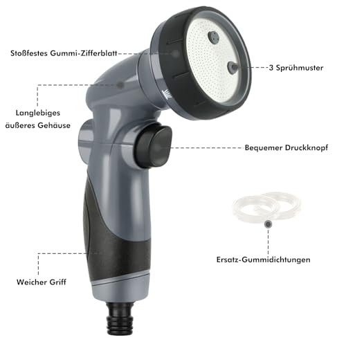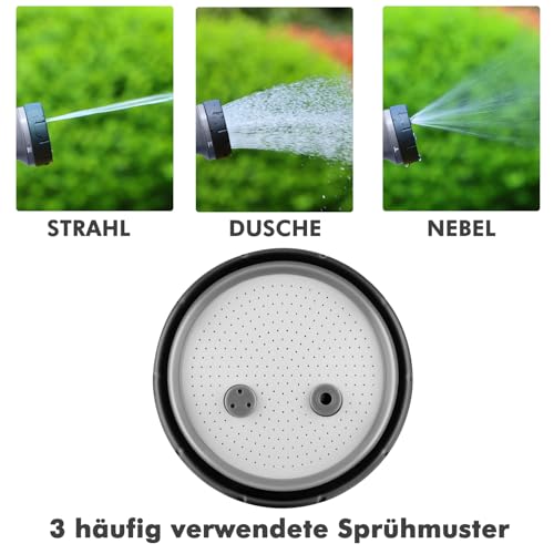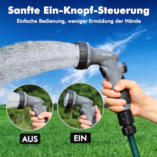 RESTMO Tuindouche, kunststof hogedruk tuinhanddouche, 3 irrigatiepatronen, sterke waterstroom voor het wassen van de auto en ultrazachte waterstroom voor bloemen, potplanten en huisdierreiniging