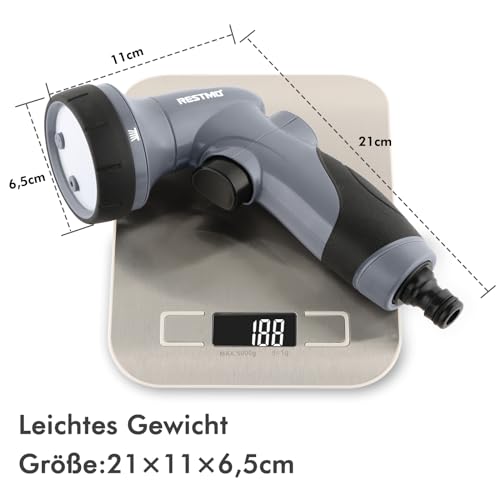 RESTMO Tuinsproeier, tuinslang mondstuk, kunststof hogedruk tuinhanddouche, 3 irrigatiepatronen, ideaal voor bloemen, potplanten, autowassen en huisdierreiniging