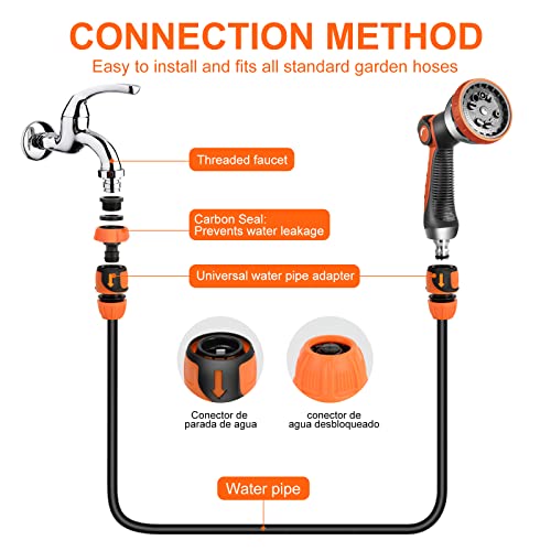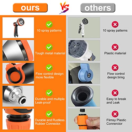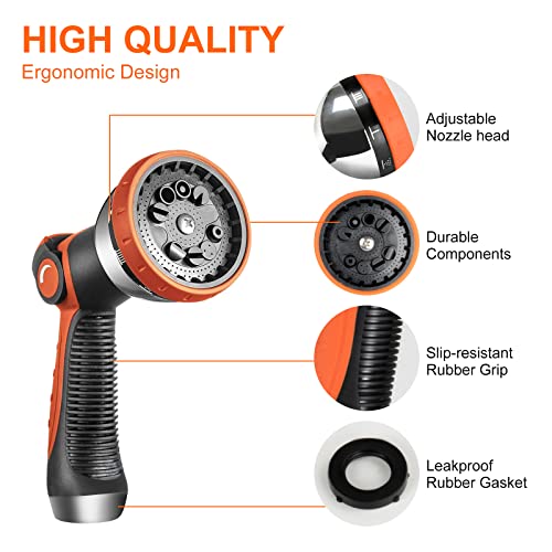 Hoge druk en lekvrij: tuinhanddouche met hoge waterdruk voor op afstand. Een precisieschroefdraadverbinding en een rubberen afdichting voor een veilige verbinding met je slang zorgen voor een extreem waterdichte afdichting, waardoor de sproeiers lekvrij zijn.