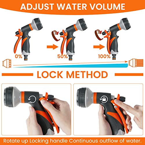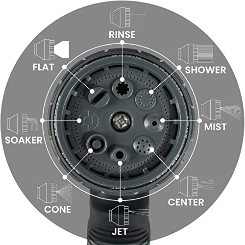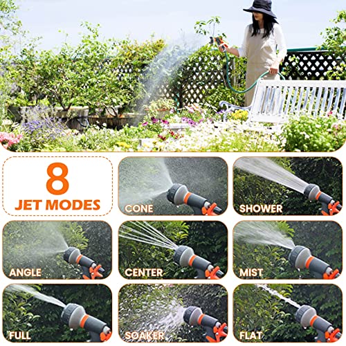 Verstelbaar pistool en 8 irrigatiemodi: de tuinspuitpistolen zijn comfortabel vast te houden en de achterste ontspanner vergemakkelijkt de bediening. 8 irrigatie-instellingen (mist, cone, babyshower, verticaal, volledig open, ventilator, jet, flat). Garden Pistolen kan voldoen aan al uw behoeften op het gebied van water geven, schoonmaken en tuinieren voor verschillende doeleinden.