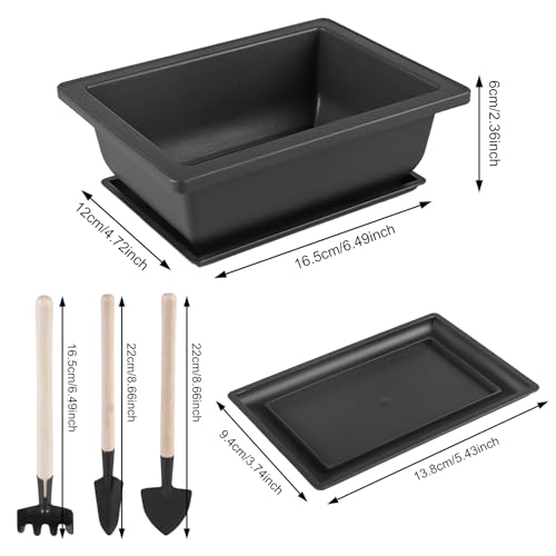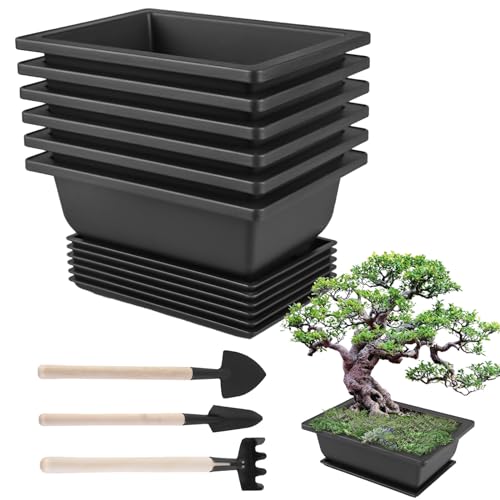 6 stuks bonsai trainingsschalen met trays, kunststof bonsai trainpotten, rechthoekige bonsai trainpotten van kunststof met tuingereedschapsset, plastic bloemenpot bonsai plant voor terras