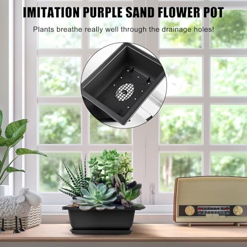 【Sterke toepasbaarheid】De kunststof bonsaischalen zijn geschikt voor het planten van verschillende planten zoals pepermuntsnoepjes, orchideeën, kruiden, vetplanten, aloa’s, cactussen en kleine potplanten. Deze potten kunnen op de vensterbank, balkon en andere plaatsen worden geplaatst om de omgeving te verfraaien.
