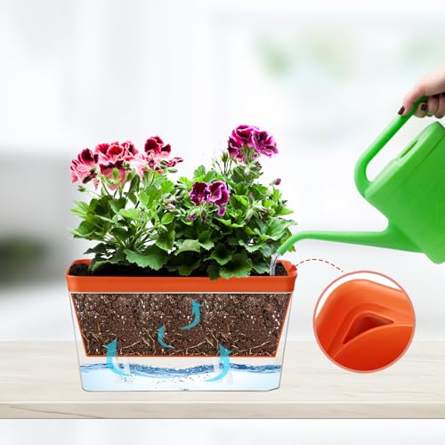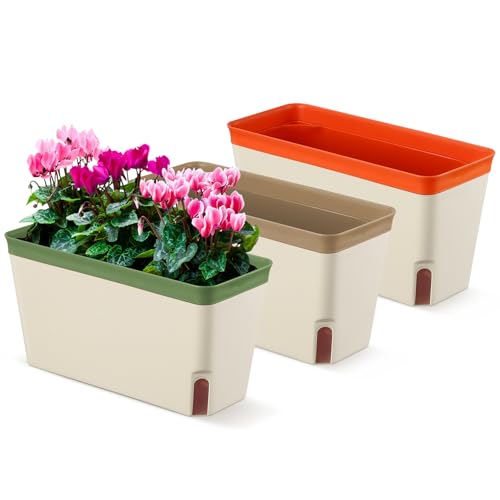 Aenmido 3-pack zelfbewaterende plantenpotten, 27 cm vensterbank kruidenplantenbak, plastic bloempotten voor binnen buiten, moderne decoratieve plantenpot met waterniveauvenster en afvoergat verborgen