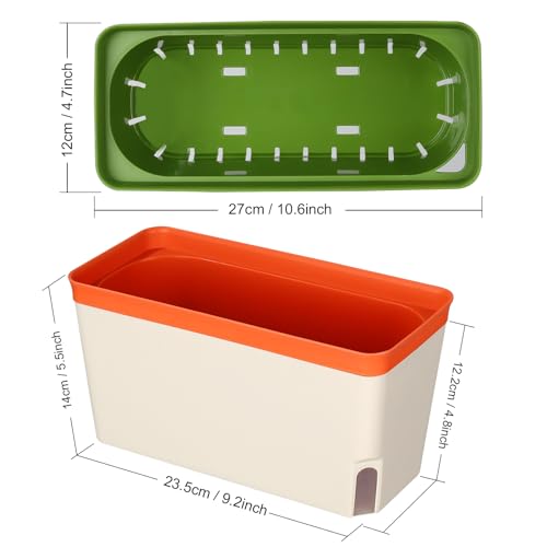Goede drainage: de plastic plantenbak bestaat uit twee delen, de binnenste plantenbak wordt gebruikt om de grond te vullen met grote drainagegaten, de buitenste plantenbak wordt gebruikt om water vast te houden om je planten goed gehydrateerd te houden, het tweelaagse ontwerp zorgt ervoor dat je planten niet uitdrogen en helpt ook om het overtollige water af te voeren.