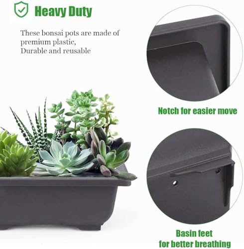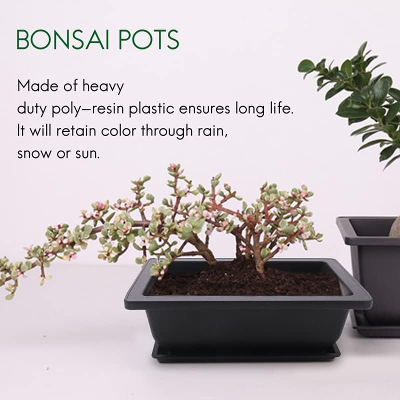 Callstick 6-delige bonsai-potten – Classic Deep Wet Tray met ingebouwd net voor planten, bloemen, vierkante plastic potten