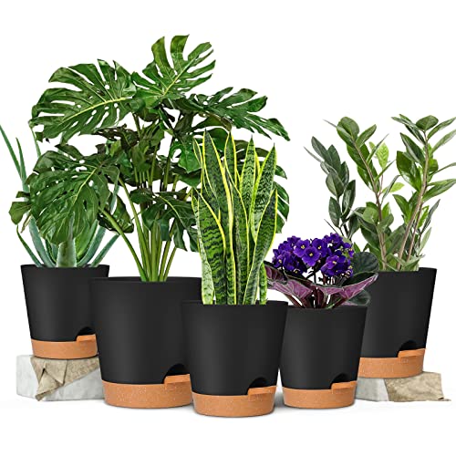 GARDIFE Plantenpotten 7/6,5/6/5,5/5 inch zelfbewaterende plantenbakken met drainagegat, plastic bloempotten, kwekerij plantpot voor alle kamerplanten, Afrikaans violet, bloemen en cactus, zwart