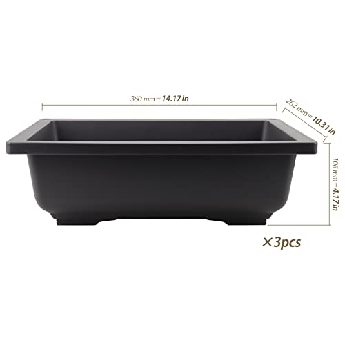 HEIHAK 3 stuks 35,5 cm grote bonsaipotten, rechthoekige ingebouwde mesh plastic bonsai trainingpotten met dienbladen, plantenbloemenboom groeiende bonsaiplanter voor tuinbenodigdheden, tuin, kantoor,