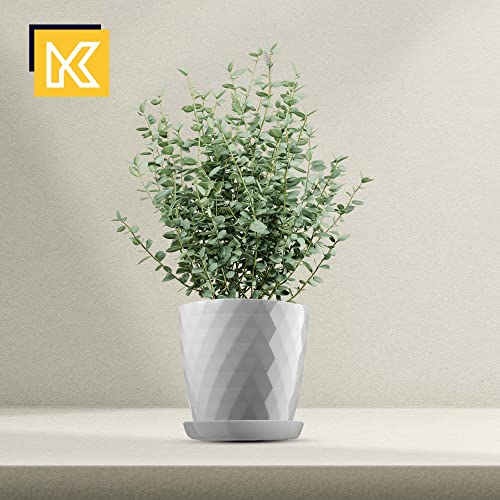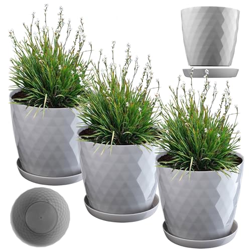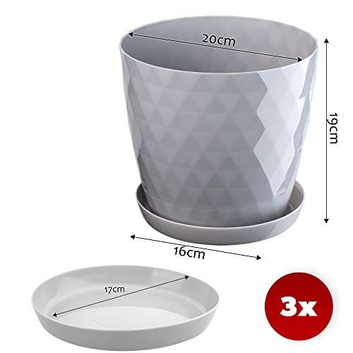 KADAX Bloempot, kunststof potset met onderzetter, plantenbak van licht materiaal, decoratieve kruidenpot, pot voor bloemen, planten, cactus en vetplanten (set van 3-20 cm, grijs)