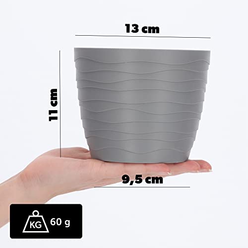 KADAX Bloempot van kunststof, diameter 11-19 cm, 7 kleuren, eenvoudige plantenpot, moderne plantenbak, robuuste bloempot, ronde pot, diameter 13 cm, grijs