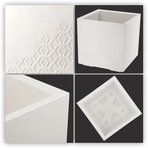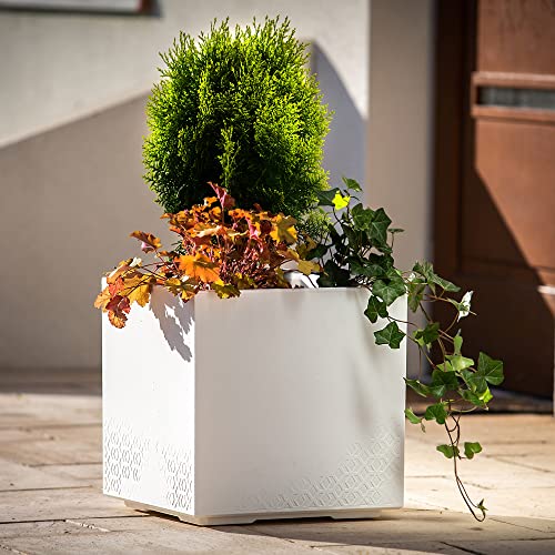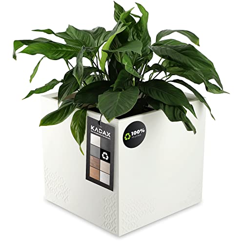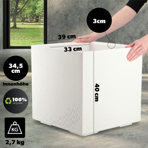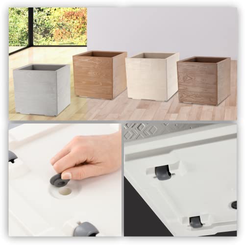 KADAX Plantenbak van kunststof, 39x39cm, 7 kleuren, vierkante bloempot, bloempot met wieltjes, plantenbak met afvoerkurk (wit, betonlook)