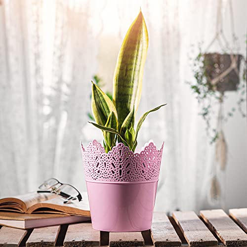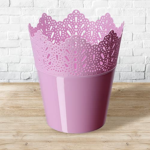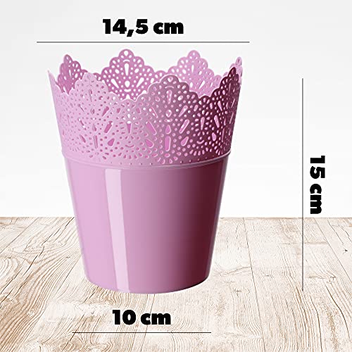KADAX Puntige bloempot van kunststof, 9 kleuren, bloempot met kantmotief, bloempot bescherming voor kantoor, pot, tuinschaal, bloembak, bloempot (diameter 14,5 cm, laag, roze)