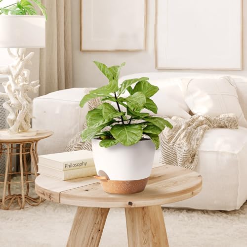 Set van 5 zelfbewaterende, luie plantenpotten, 17,78 + 16,51 + 15,24 + 13,97 + 12,7 cm, witte kunststof potten voor alle kamerplanten, vetplanten, viooltjes, bloemen en cactussen