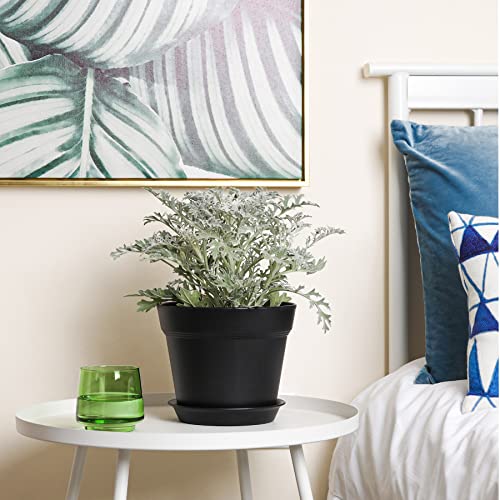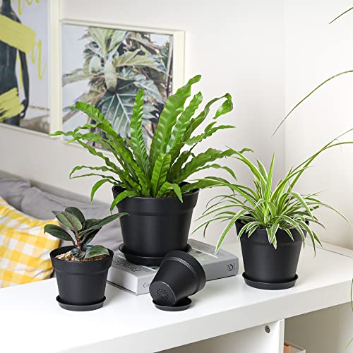 T4U Kunststof bloempot met onderzetter, 19 cm, set van 6 kunststof bloempotten,kruidenpotten met meerdere afvoergaten, ronde plantenpot voor binnen en balkon, voor vetplanten, cactussen, zwart