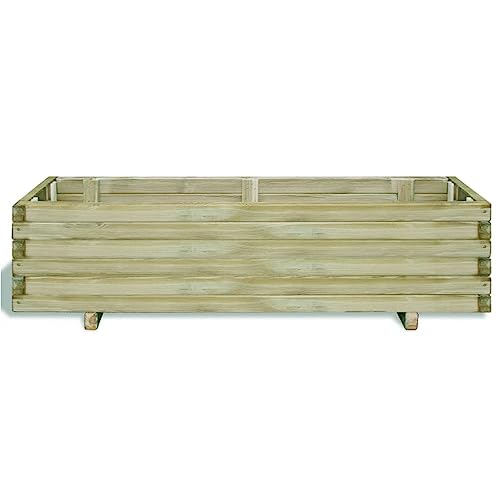 Deze massief houten rechthoekige plantenbak biedt ruimte aan een aanzienlijk aantal planten of bloemen. Dankzij het groen geïmpregneerde grenenhout is deze hoogwaardige plantenbak rotbestendig en duurzaam.