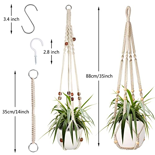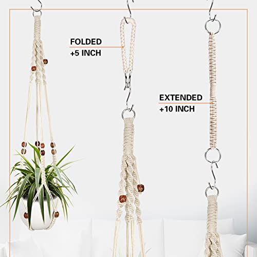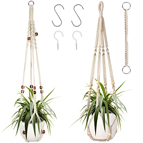 Augshy Macramé plantenhanger, 2 stuks hangende plantenhouder met verlenger, plantenhangers voor binnen en buiten, decoratie, macramé, hangende plantenmand met 4 haken