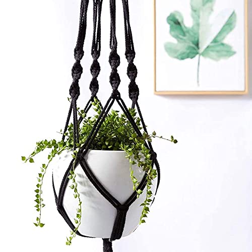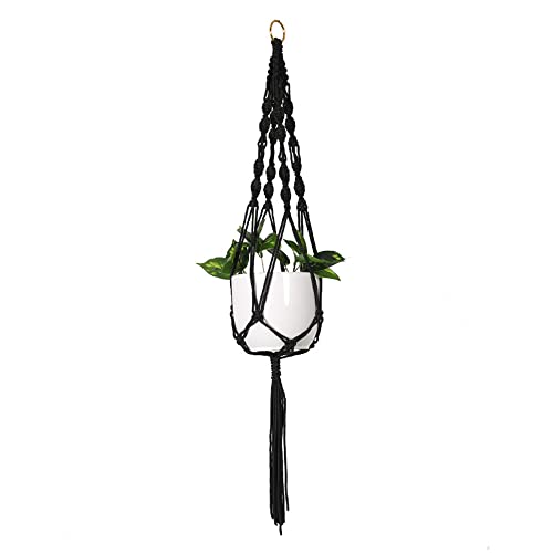 CENPEK Set van 2 105 cm macramé plantenhangers, hangende plantenmanden, hanger met kwastjes, bloempothouder, katoenen touw, zwart