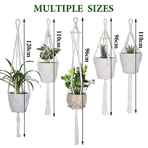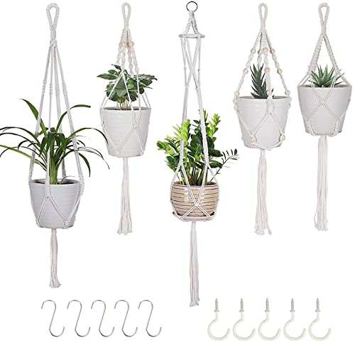 CYH Macramé Bloemmand Set – 5 Stuk Katoenen Touw Opknoping Bloemmand Opknoping – Stevige Macramé Plantenhouder Hanger – voor Binnen Buiten Plafonds Balkons Muur Decoratie