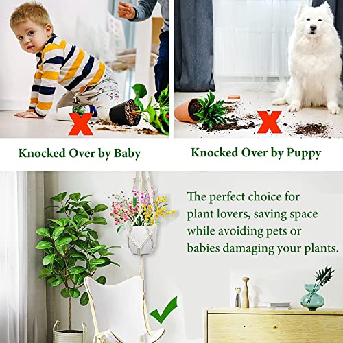 【Gemakkelijk Op te Hangen】Rol gewoon de 4 pootkettingen af en plaats de pot in het midden van de verbinding. Het eenvoudige en verfijnde ontwerp van de macramé plantenhanger is geschikt voor verschillende kleuren en patronen van bloempotten, perfect voor het weergeven van uw mooie planten