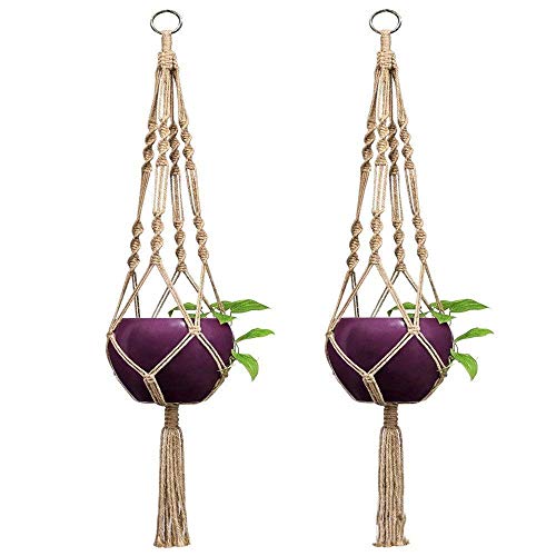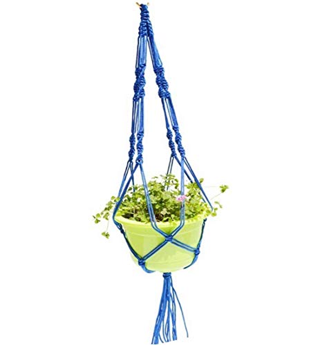 Demarkt Plant Hanger Macrame Touw Plant Pot Houder Hangende Mandhouder met Sleutelhanger voor Indoor Outdoor Balkon Plafondbenodigdheden (blauw)