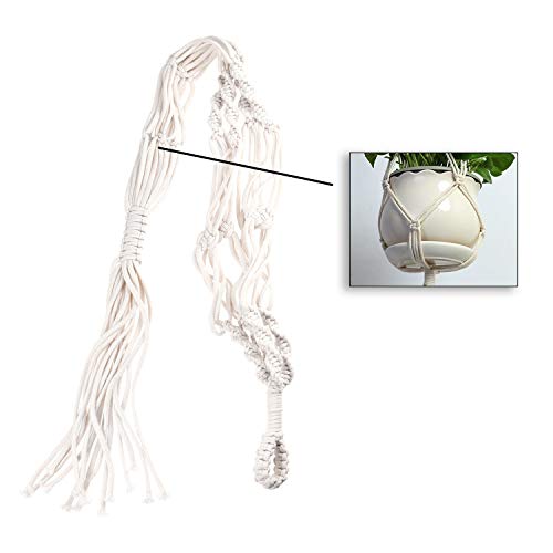 VINTAGE INSPIRED >> De prachtig gevlochten steken van de macramé plantenhanger geven een bohemien sfeer. Bereik een aantrekkelijke look in combinatie met een mooie modern ogende pot en hangplant. De hanger is flexibel en kan verschillende vormen en maten van plantenpotten bevatten.