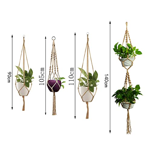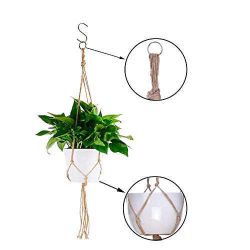 Nsiwem Macrame Plantenhanger 4 stuks hangende plantenpot macramé bloempot plantenhouder jute touw bloempot mand opknoping touw met 4 hangende haken voor bloempotten