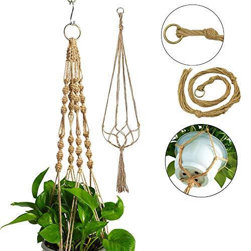 De plantenhangers zijn gemaakt van jute. Mooi macramédesign en goedkoop voelt ook niet aan. Voor duurzaamheid is ook zeer goed. Cadeau voor plantenliefhebbers.