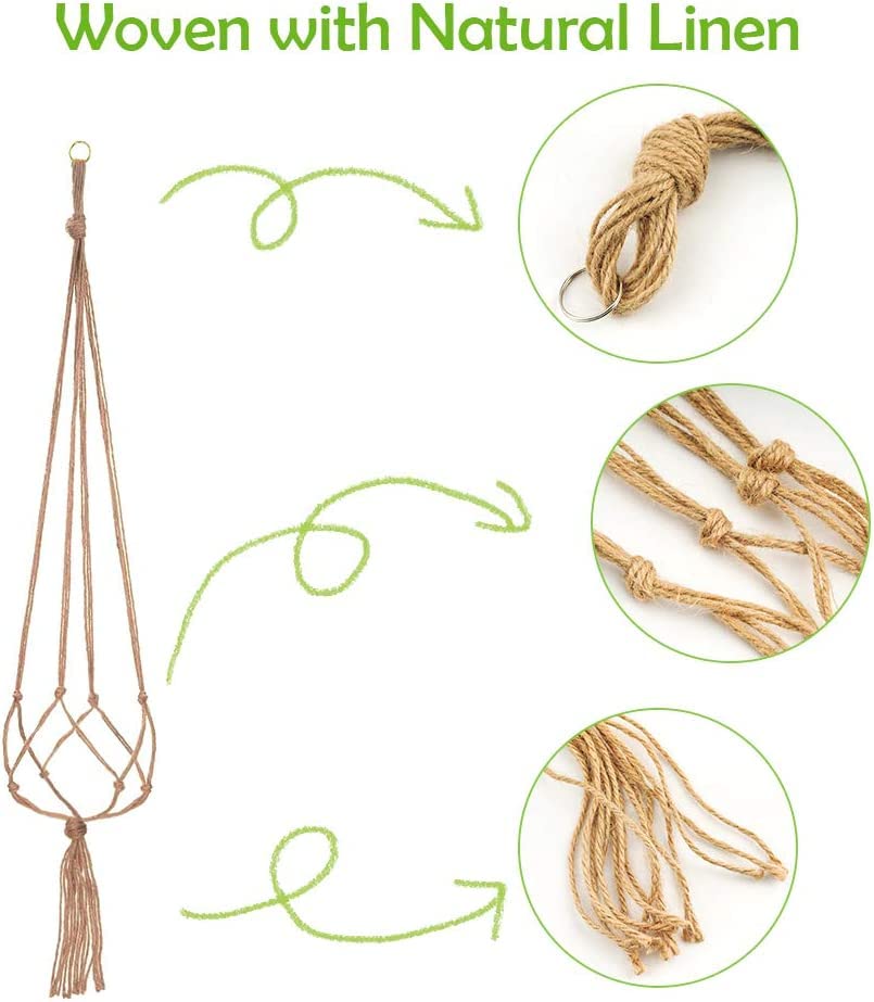 Handgeweven touw: de plantenhangers zijn gemaakt van natuurlijk jute materiaal, met de hand geweven met eenvoudig ontwerp, niet gemakkelijk te vervormen, corrosiebestendigheid, sterk en duurzaam. Geschikt voor vele decoraties.
