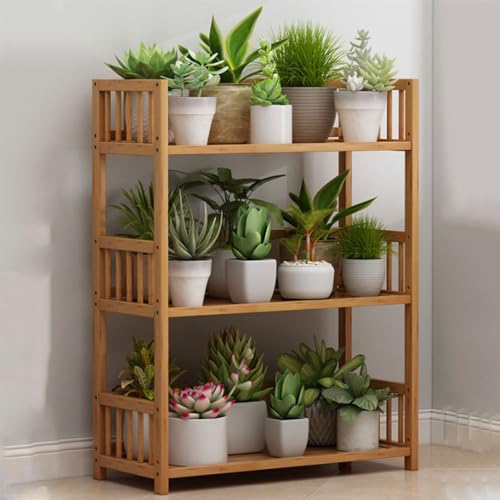 This 3-Tier banboo plant shelf can neatly organize your plants indoors and outdoors, and the flower display stand has a small footprint and fits any scene in your home. It can use the plant rack to store any items according to your requirements, such as decorations, collectibles, books, crafts, photo frames, bathroom supplies, etc. Placing items on shelves can also improve the tidiness of your interior space.