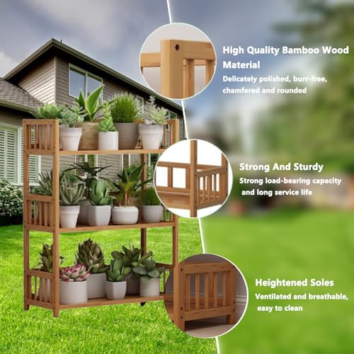 【Multi-layer Design】The 3-layer flat design of this open wide can helps you maximize your vertical space, This 3-tier plant stand perfectly utilizes vertical space for plants, saves more floor space for other items.tiered design allows your plants to better absorb the sunlight,