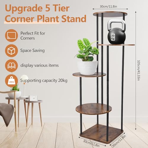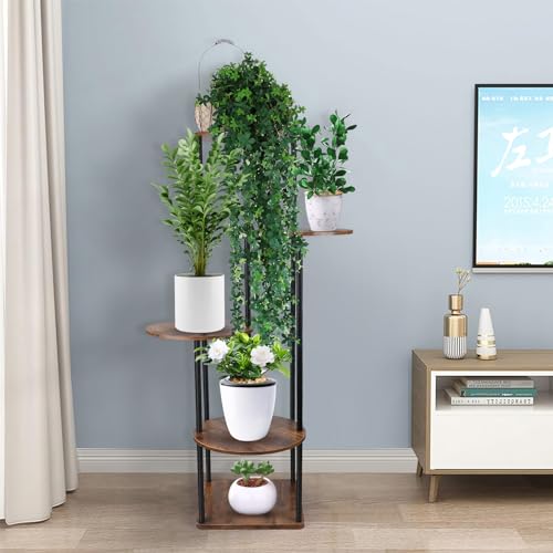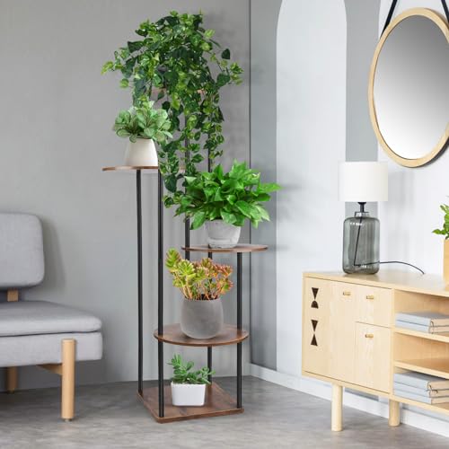 Diealles Shine 5-laags bloemenstandaard, hout, plantenstandaard voor binnen, 105 cm, plantenrek voor balkon, tuin, woonkamer, decoratie