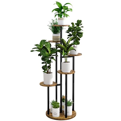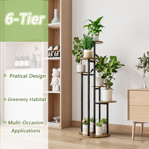 INGIORDAR Plantenstandaard binnen 6 niveaus 5 meerdere potpotten voor patio tuin balkon woonkamer hoek (6 niveaus zwart+rustiek bruin)