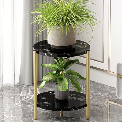 Modern Light Luxury 2 Tier Plant Stand Indoor Outdoor Tall Corner Plant Display Stand Heavy Duty Metal Flower Stand, Round Rustproof Flower Pot Holder