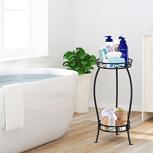 Vintage Charm – De Metal Plant Stand heeft een smeedijzer geïnspireerd ontwerp, gebogen lijnen maken de zwarte ronde bloempot plank prachtig, kan mengen met verschillende decoratiestijlen, wat zeer geschikt is voor plantenliefhebbers.