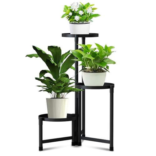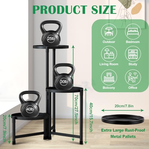 Aantrekkelijke zwarte metalen plantenstandaard: met smeedijzeren geïnspireerde dienblad, heeft onze 3-laags plantenstandaard een elegant en minimalistisch ontwerp. Plantenstandaards voor binnen vullen alle interieurstijlen aan en transformeren uw huis of tuin in een lichte en moderne ruimte.
