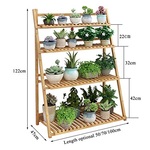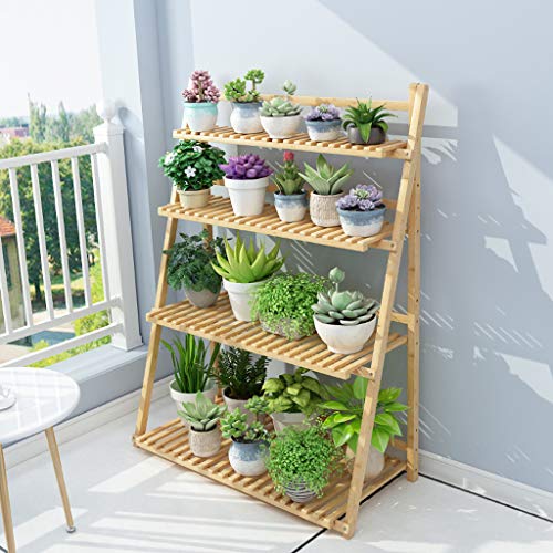 Plant Stand 4-laags Plant Display Stand Bloem Stand Bamboe Frame Bloem Trappenkast Balkon Vouwen Frame Bloem Pot Opslag Rack (Breedte Kleur) Multilayer