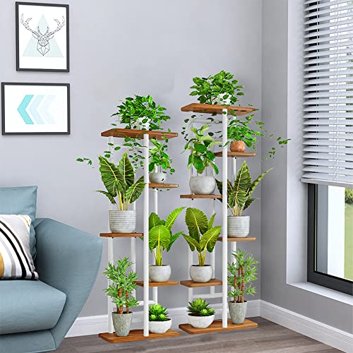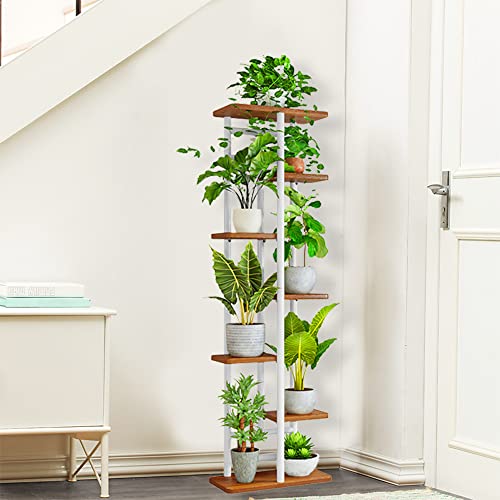 QLFJ-FurDec Plantentrap, 7 dieren, voor binnen, hout en metaal, staande bloemenstandaard, rekken, 7 niveaus, 8 potten, multi-bloempot, pothouder voor balkon, tuin, vensterbank, hoek (7 lagen, 8