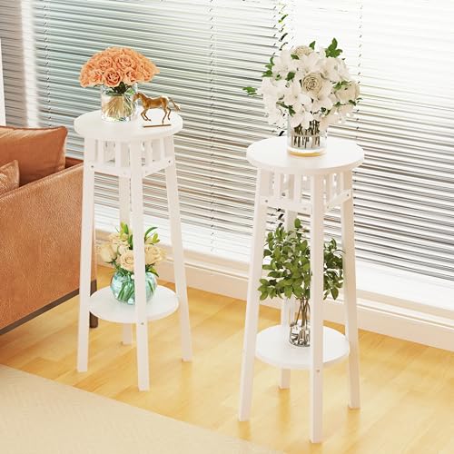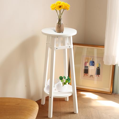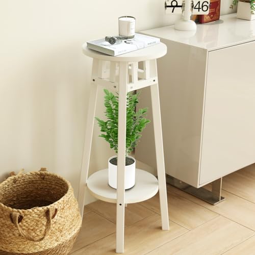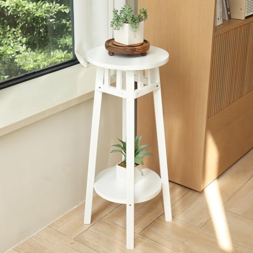 unho Plant Pot Stand Indoor, 31 inch Hoge Plant Stand Witte Plant Tafel Houten Kruk voor Planten Ronde Bijzettafel Eindtafel Woondecoratie