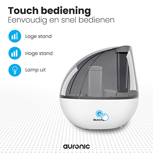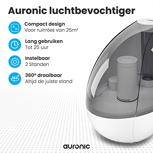 Auronic Ultrasoon Luchtbevochtiger– Humidifier – Luchtbevochtigers – Luchtbevochtiger Babykamer Slaapkamer Kinderkamer – 1,5L – Fluisterstil – Tot 25 Uur – Wit